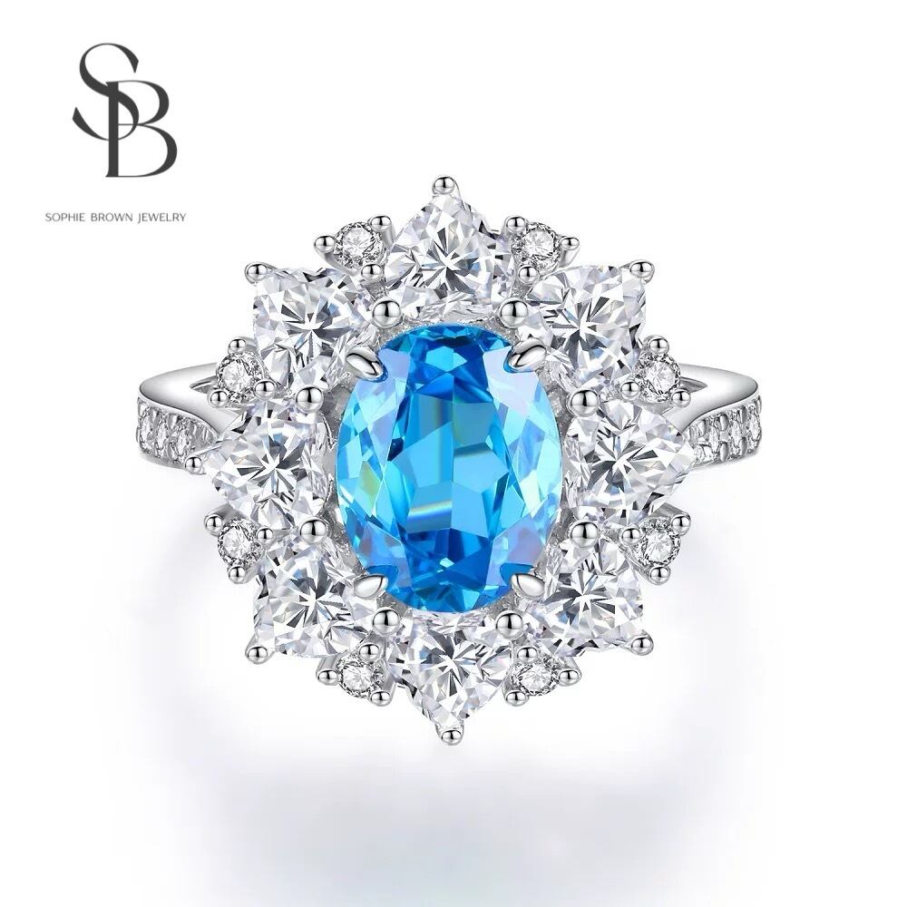 ブルー 人工サンタマリアアクアマリン ハイカーボンダイヤモンド オーバル キラキラ シルバー925 ラグジュアリー ゴージャス 指輪 ヘイローリング ブルートパーズカラー 大きめ ビッグ 青 高炭素ダイヤモンド 海 フラワー 花 | SOPHIE BROWN