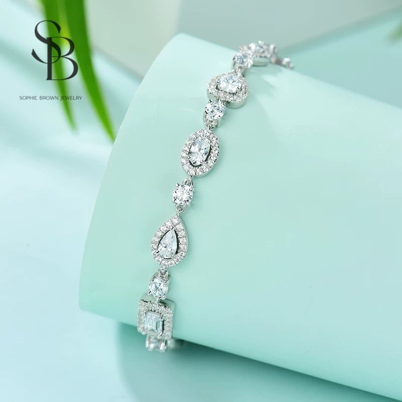 ハイカーボンダイヤモンド エタニティブレスレット キラキラ シルバー925 ゴージャス 大きめ ビッグ 高炭素ダイヤモンド ホワイト テニス ヘイローブレスレット ハート オーバル ペアシェイプ マーキス ラウンド | SOPHIE BROWN