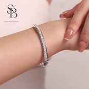 モアッサナイト ラウンド エタニティ バングル ブレスレット キラキラ シルバー925 ラグジュアリー ゴージャス クール モアサナイト ダイヤモンド ラグジュアリー ホワイト クラシック