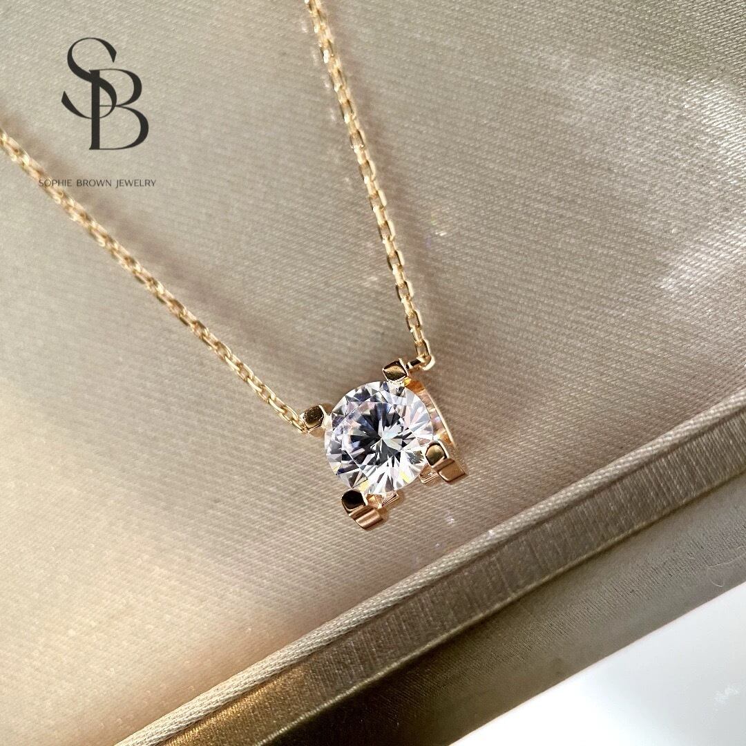 4本爪 ハイカーボンダイヤモンド ラウンド ソリティアネックレス キラキラ シルバー925 ゴージャス 1カラット 高炭素ダイヤモンド ホワイト モダン スクエアセッティング 1粒 一粒 ローズゴールドメッキ | SOPHIE BROWN