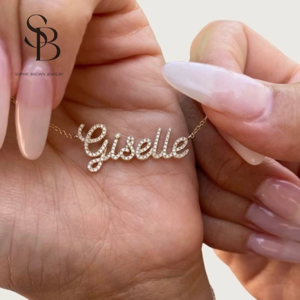 名入れ ハイカーボンダイヤモンド ラウンド カスタムネックレス キラキラ 文字入れ シルバー925 ゴージャス 高炭素ダイヤモンド ホワイト イニシャル オーダーメイド ネームネックレス ローズゴールドメッキ | SOPHIE BROWN
