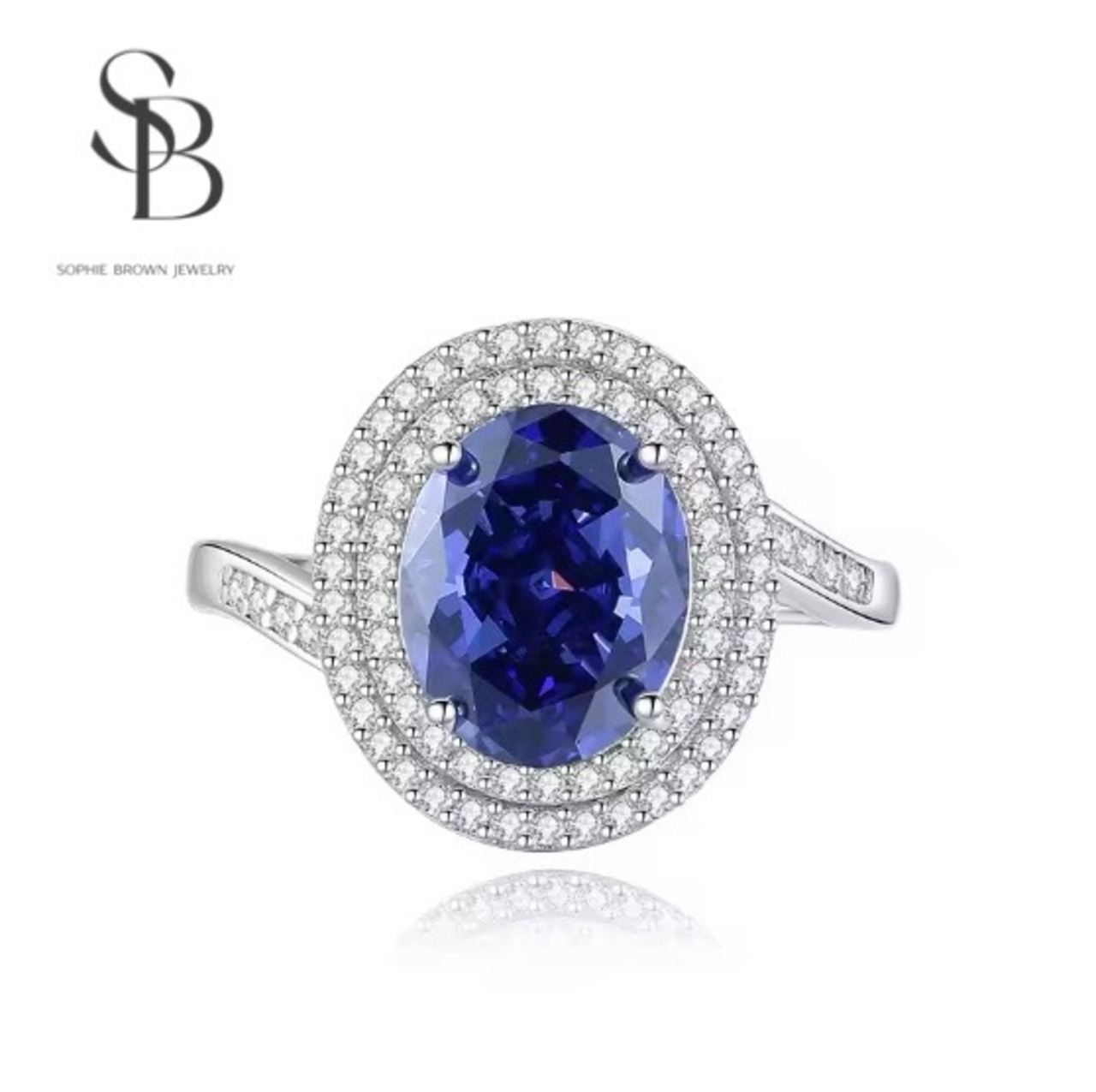 人工タンザナイト ハイカーボンダイヤモンド キラキラ シルバー925 ゴージャス 指輪 リング メレ 高炭素ダイヤモンド 青 紫 レトロ ブルー パープル オーバル ダブル ヘイローリング | SOPHIE BROWN