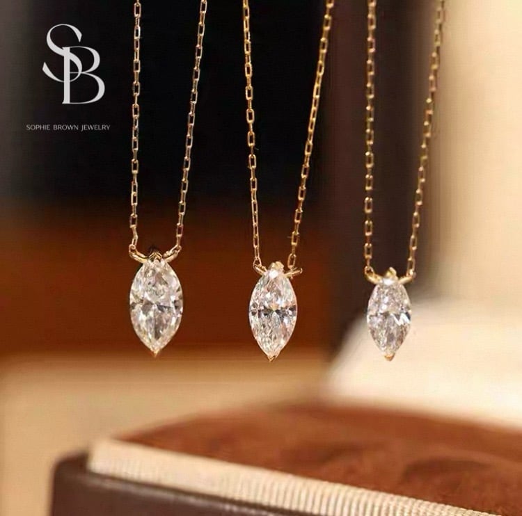 ラボグロウンダイヤモンド マーキスカット 0.5/0.7/1ct 18金 ゴージャス 一粒 1粒 シンプル ソリティア ネックレス K18