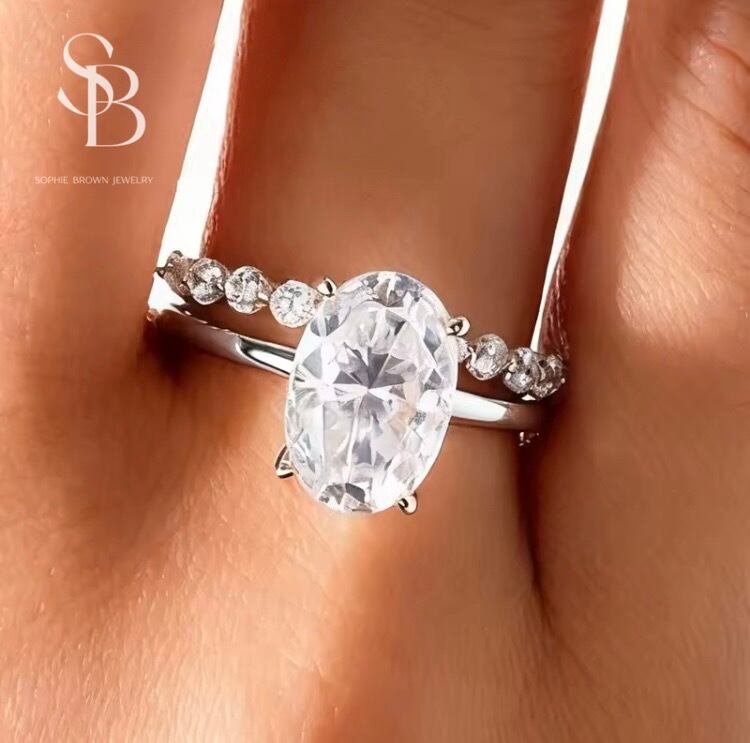 2本セット モアサナイト オーバル ハイカーボンダイヤモンド キラキラ シルバー925 ゴージャス 指輪 リング ホワイト エンゲージリング ハーフエタニティ リング ダブルリング モアッサナイト