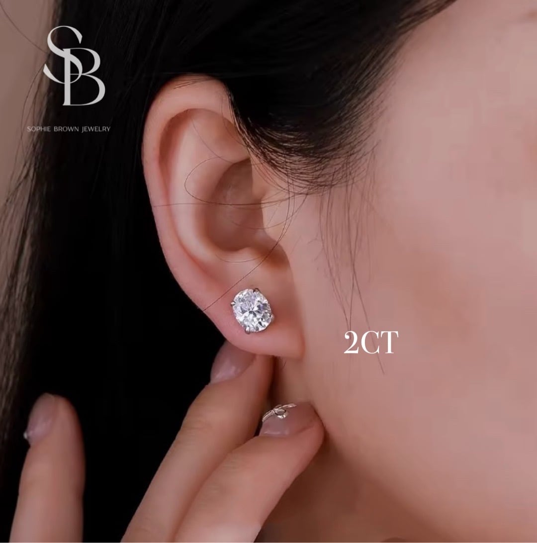 モアサナイト オーバル 1/2/3/4ct キラキラ シルバー925 ゴージャス ダイヤモンド ホワイト モッアサナイト 一粒 1粒 シンプル ソリティアピアス スタッドピアス