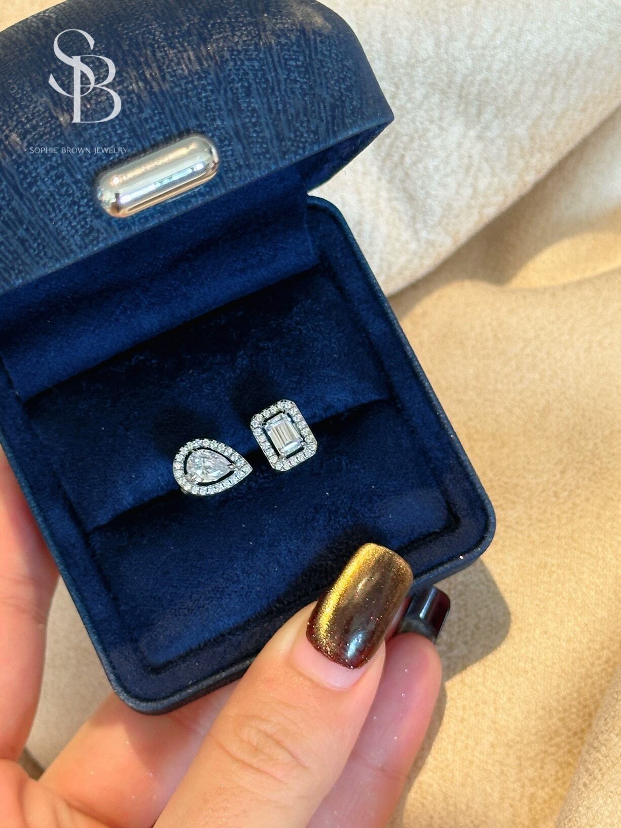 ダブルストーン ハイカーボンダイヤモンド キラキラ シルバー925 ゴージャス 指輪 リング ホワイト ペアシェイプ エメラルドカット ヘイローリング フリーサイズ