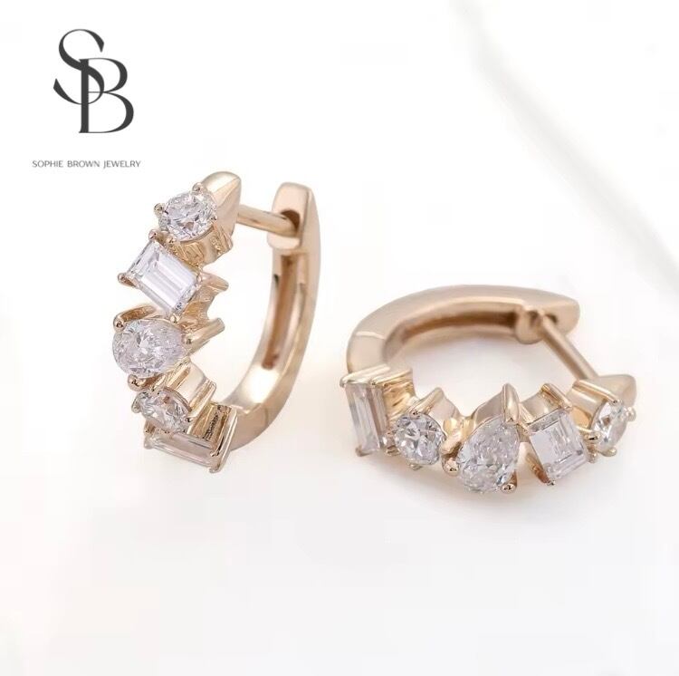 異なるカットが繊細に煌めく、洗練されたフープピアス。