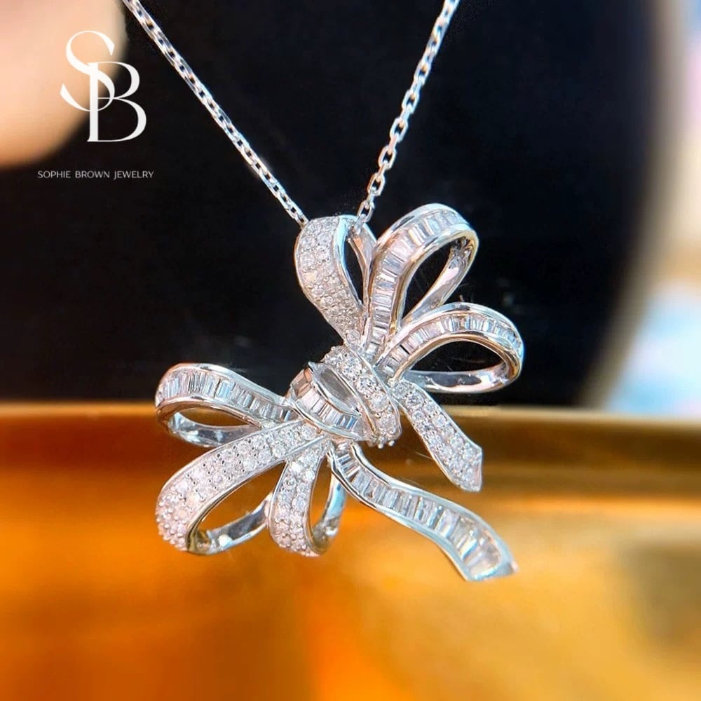 天然ダイヤモンドを贅沢にあしらったリボンモチーフネックレス。立体感のあるデザインが胸元で上品に輝きます。