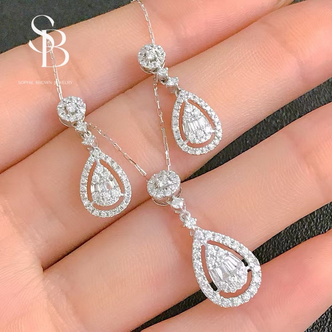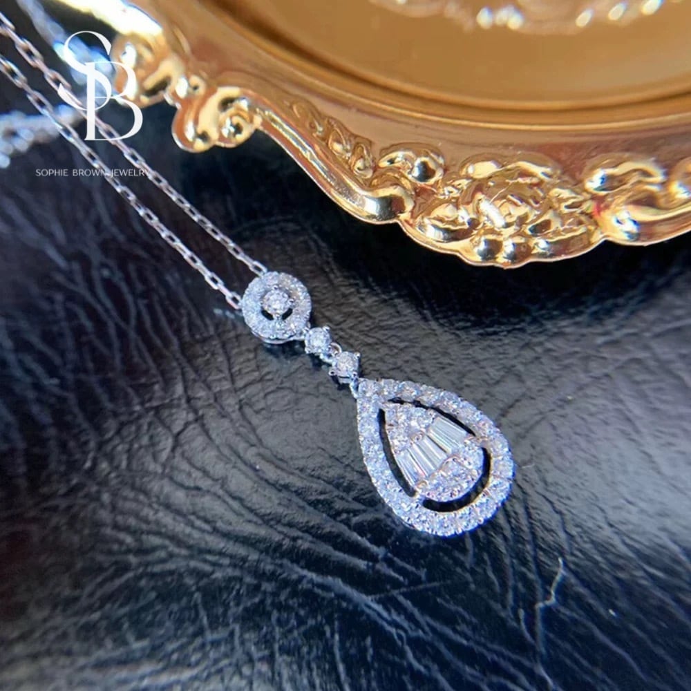天然ダイヤモンドの輝きを贅沢にあしらったペアシェイプのネックレス。