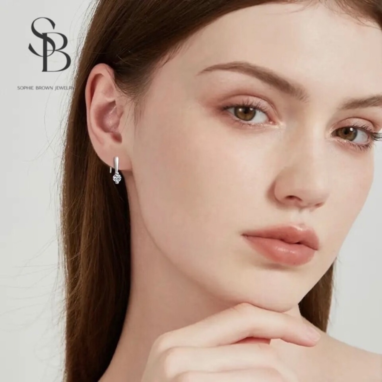 モアッサナイト ラウンド ドロップ フックピアス キラキラ ソリティアピアス S925 ゴージャス ウェディング シンプル モアサナイト ダイヤモンド ホワイトゴールド シルバー | SOPHIE BROWN