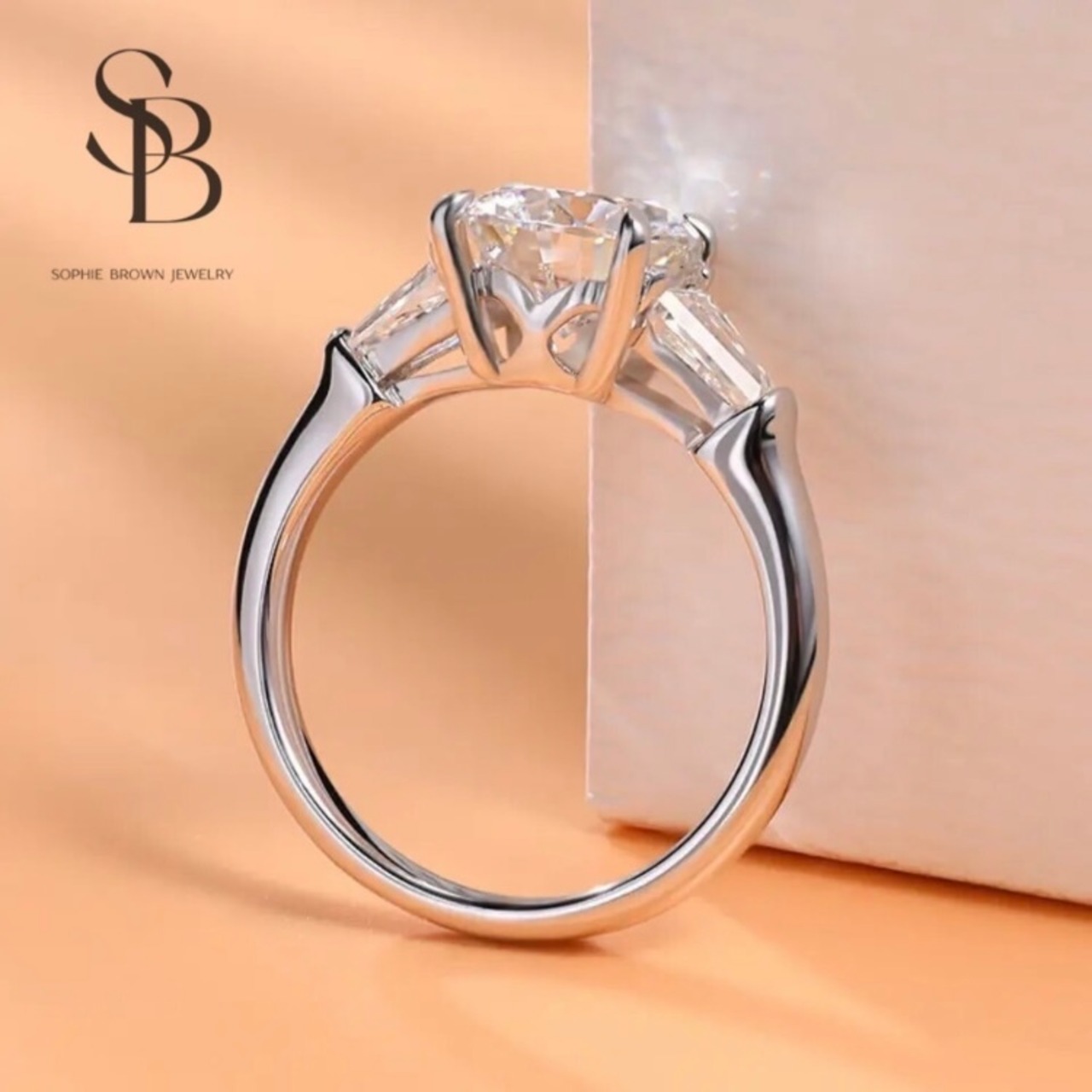 主石:モアッサナイト 約8mm 2カラット+0.4ct×2