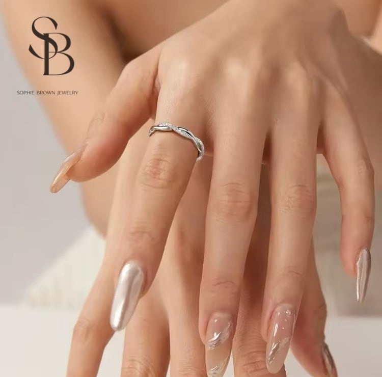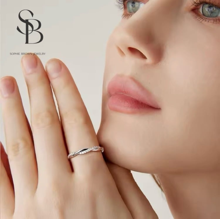 モアッサナイト ツイスト エタニティリング/ハーフエタニティリング キラキラ シルバー925 指輪 ウェディング シンプル エンゲージリング モアサナイト ダイヤモンド 小さめ | SOPHIE BROWN