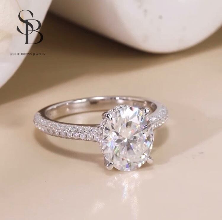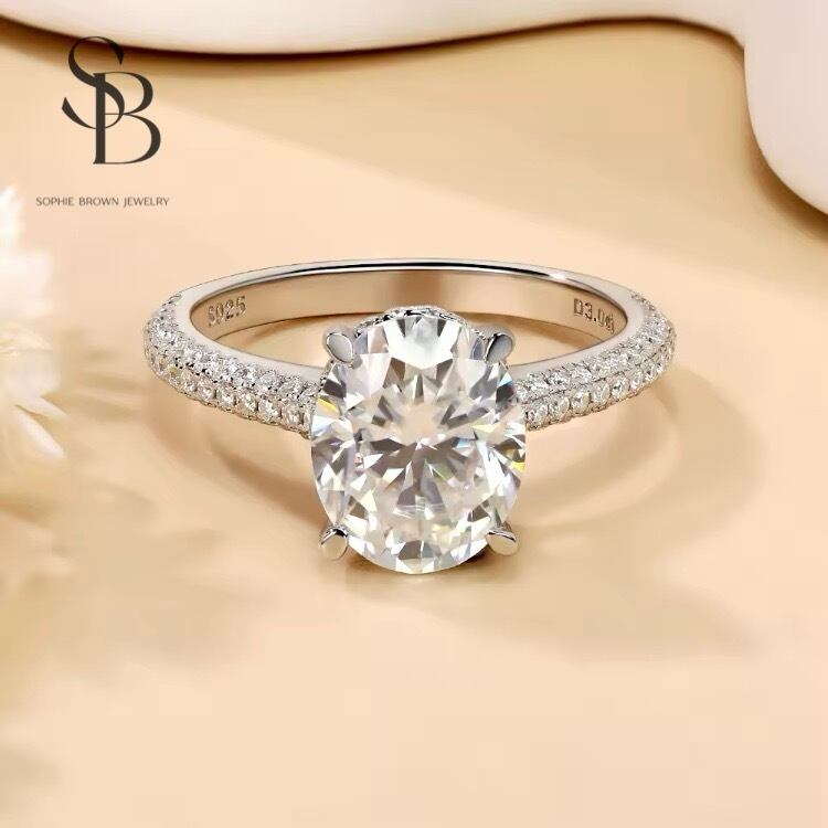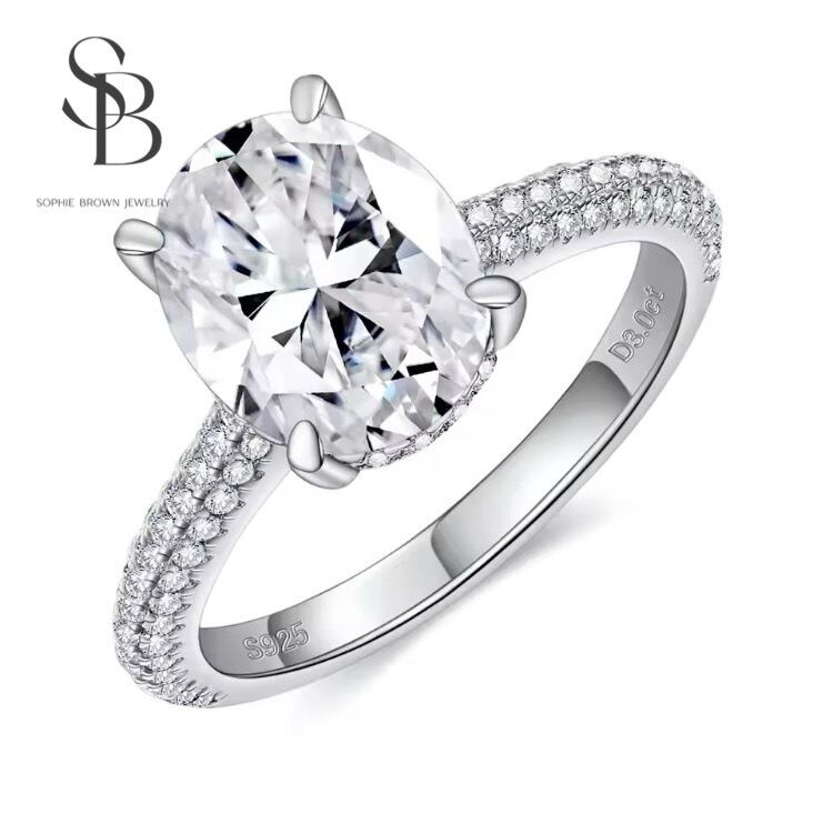 3カラット モアッサナイト オーバル リング キラキラ シルバー925 指輪 ウェディング シンプル エンゲージリング モアサナイト ダイヤモンド メレ パヴェ 大きめ ビッグ | SOPHIE BROWN