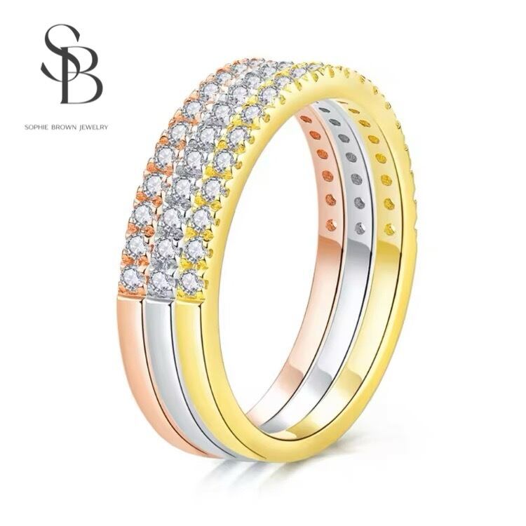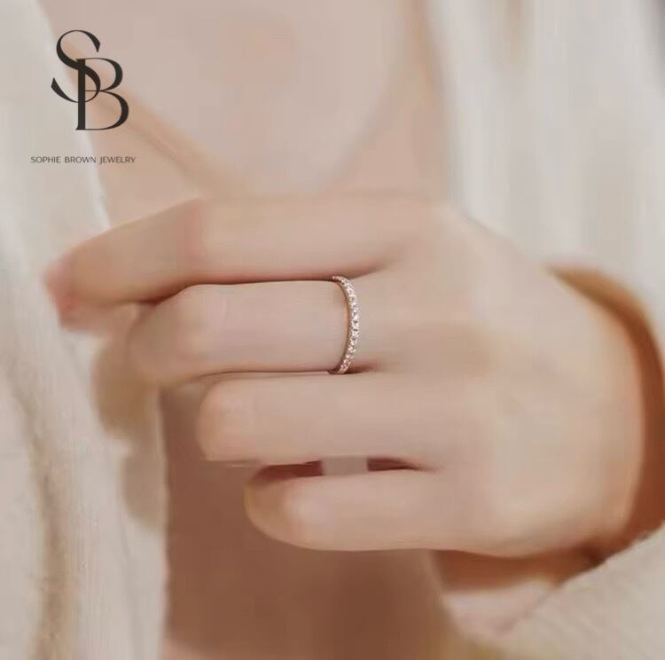 モアッサナイト ハーフエタニティリング キラキラ シルバー925 指輪 ウェディング エンゲージリング モアサナイト ダイヤモンド イエローゴールド ホワイト 細い 重ねづけ | SOPHIE BROWN
