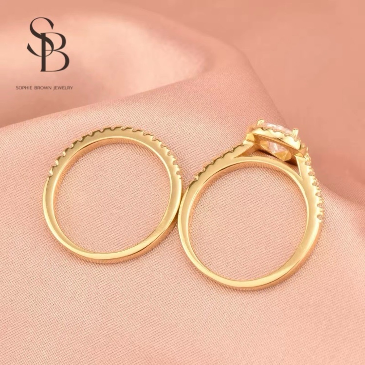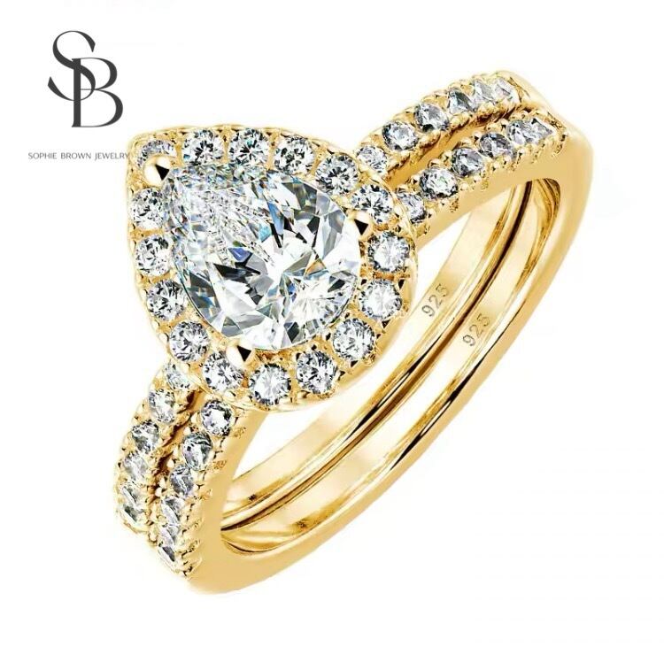 2本セット AAAAA キュービックジルコニア ペアシェイプ ヘイローリング キラキラ S925 ゴージャス ラグジュアリー 指輪 ウェディング ダイヤモンド メレ 重ね付け ホワイト ドロップ ゴールド | SOPHIE BROWN