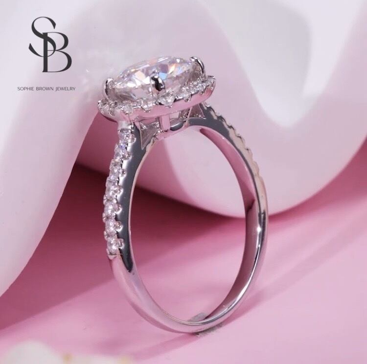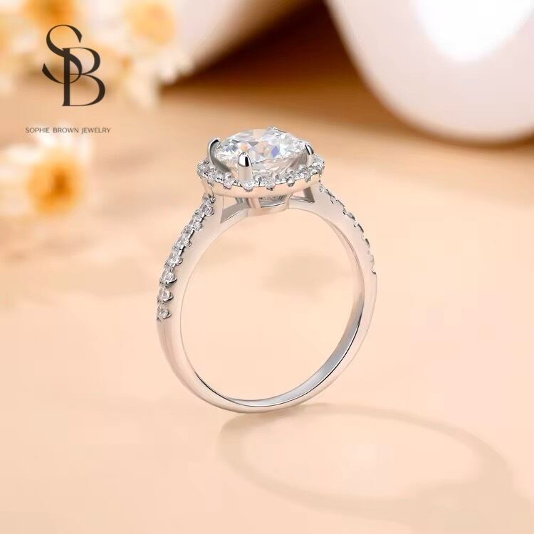 モアッサナイト ラウンド 1ct/2ct ヘイローリング キラキラ シルバー925 ゴージャス 指輪 ウェディング シンプル エンゲージリング モアサナイト ダイヤモンド | SOPHIE BROWN