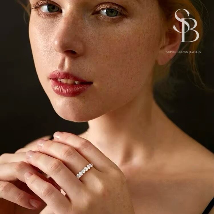 モアッサナイト オーバル キラキラ シルバー925 ゴージャス ラグジュアリー ハーフエタニティリング 指輪 存在感 モアサナイト ダイヤモンド ウェディング ホワイト バンド | SOPHIE BROWN