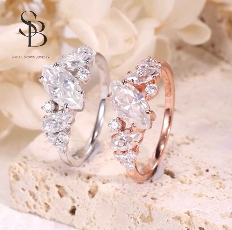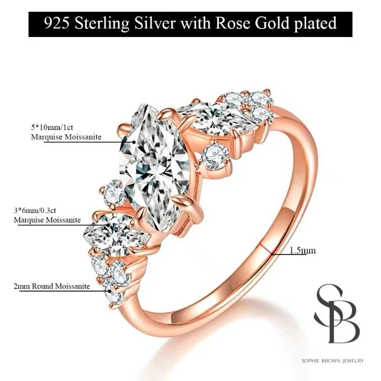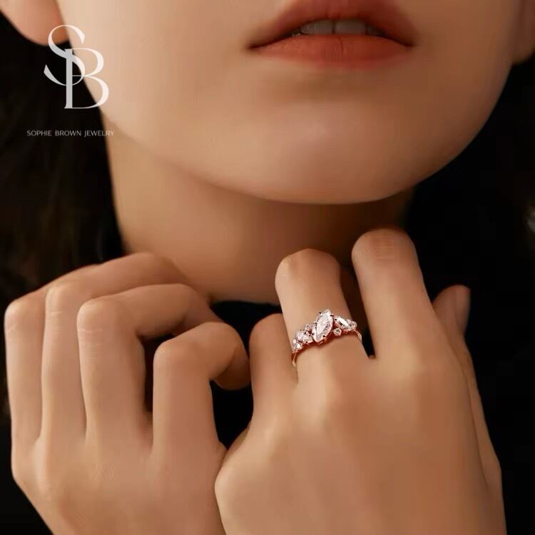 フルモアッサナイト マーキス リング キラキラ シルバー925 ゴージャス ラグジュアリー 指輪 ウェディング モアサナイト ダイヤモンド ホワイト ローズゴールド ピンク | SOPHIE BROWN