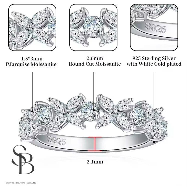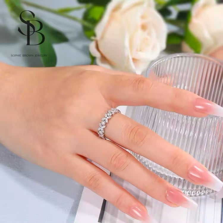 モアッサナイト 四葉のクローバー ハーフ/フルエタニティリング キラキラ S925 ゴージャス 指輪 ウェディング シンプル エンゲージリング モアサナイト ダイヤモンド 四つ葉 フラワー 花 マーキスカット