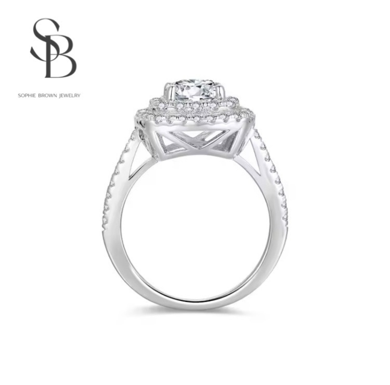 モアッサナイト クッションカット ダブルヘイローリング キラキラ シルバー925 ゴージャス 指輪 ウェディング エンゲージリング モアサナイト ダイヤモンド ラグジュアリー メレタイプ | SOPHIE BROWN